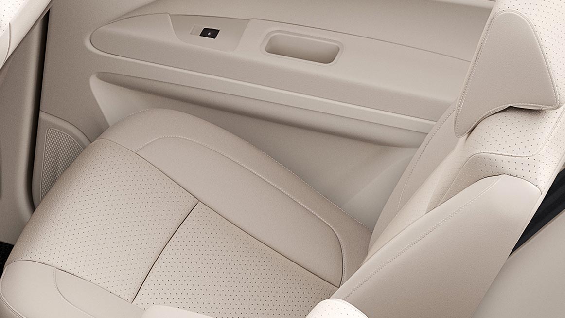 Premium dual tone interiors with a piano black dashboard, pearl white and chrome finishes.